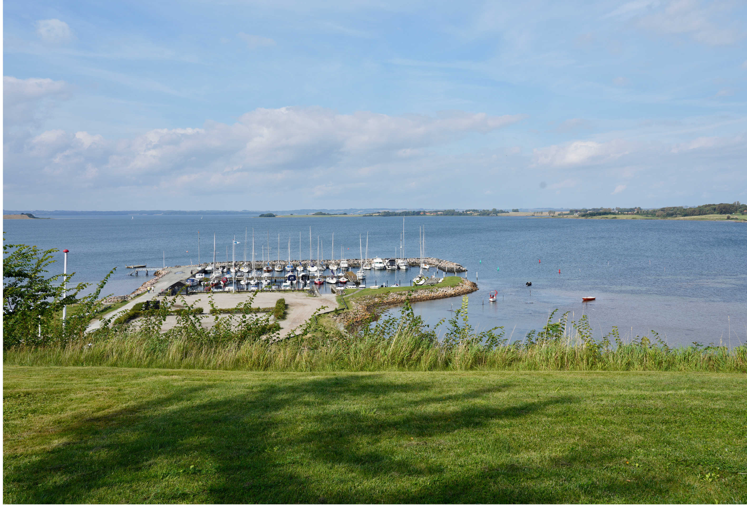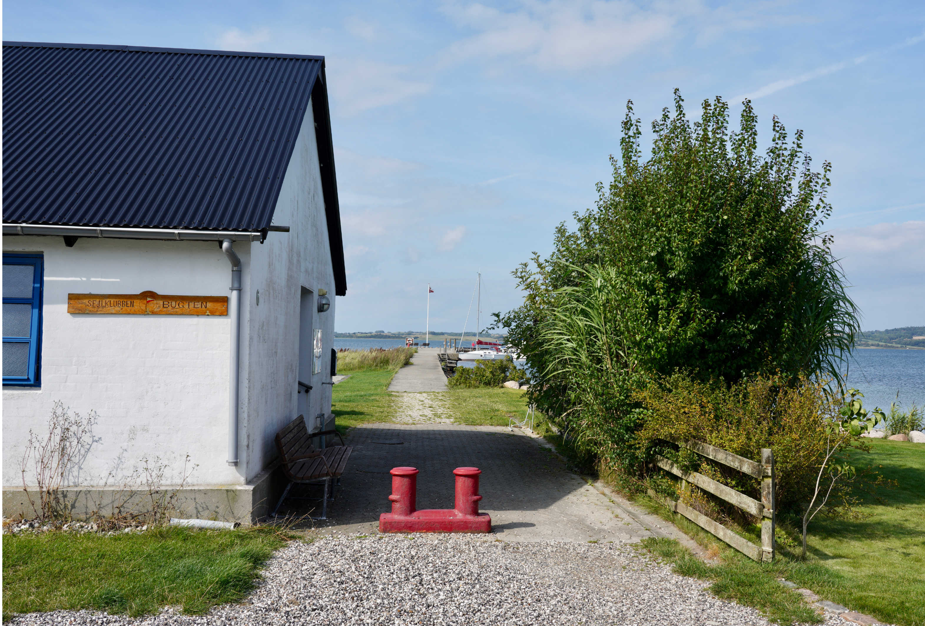 Det lille hvide hus i Kongsgårde ligger på et lavt maritimt forland tæt på skibsbroen og Begtrup Vigs blå reflekterende flade. Mod syd ligger et karakterfuldt bakket morænelandskab fra den sidste istid.
