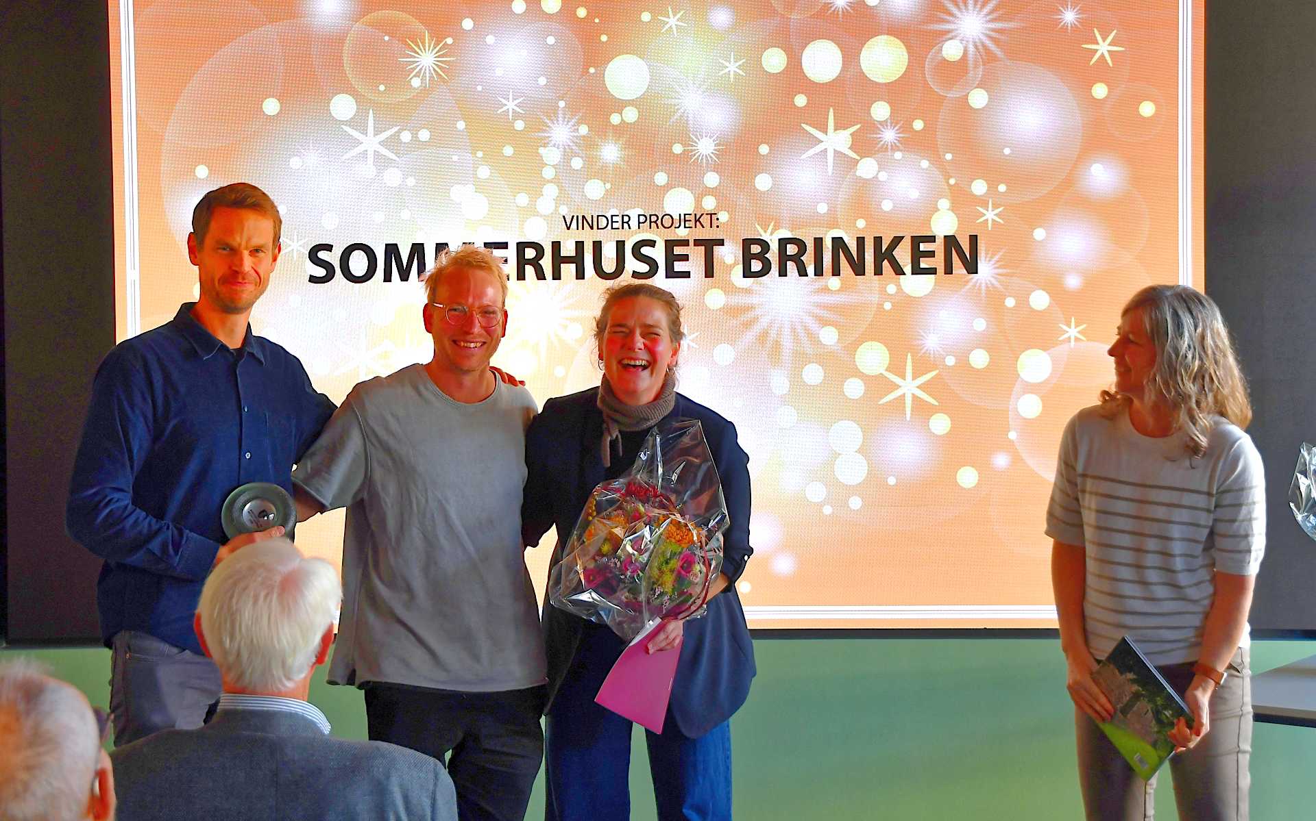 Sommerhuset Brinken udpeges til vinder af Syddjurs Kommunes Arkitektur- og Bevaringspris 2024 for sin banebrydende arkitektur, der kommer til udtryk i den overbevisende tilpasning til stedet, de spændingsfulde arkitektoniske rumlige sammenhænge, de gedigne materialer og håndværk af høj kvalitet.