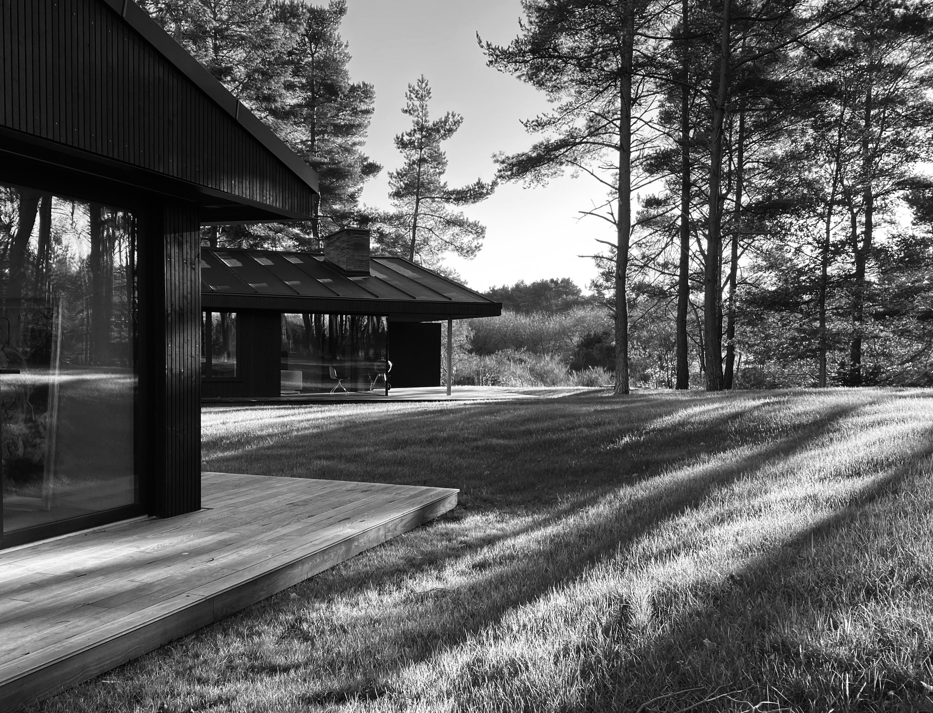 Byggeriet, et 114 m2 stort sommerhus inklusive et anneks, var klar til indflytning i 2023. Det første indtryk af sommerhuset på naturgrunden, der er “vild med vilje”, er en fornem indpasning og et byggeri med en poetisk, svævende lethed.