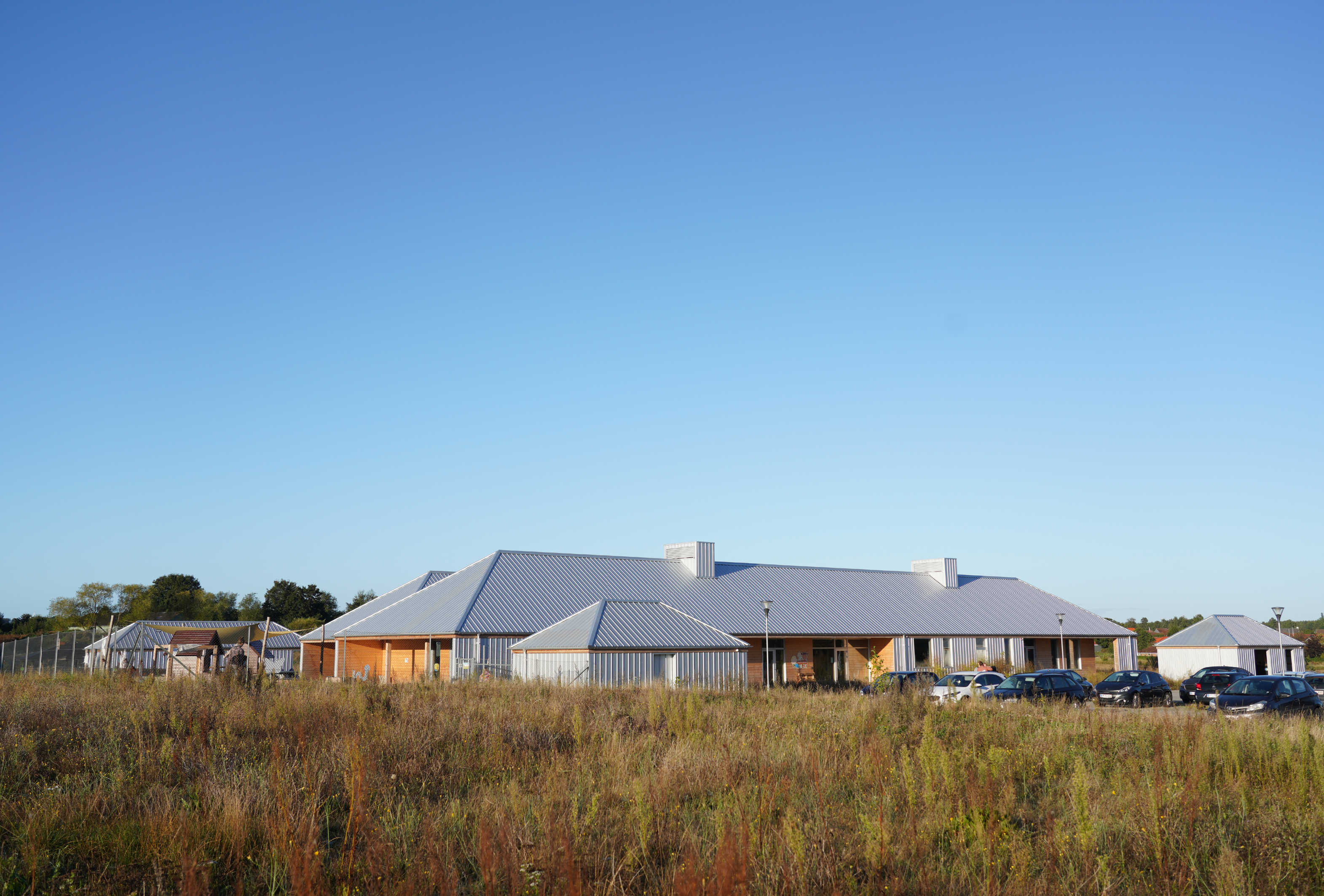 Børnehuset åbnede i de nye lokaler i april 2023. Huset er ca. 1000 m2 og rummer ca. 100 vuggestue- og børnehavebørn. Bygningen refererer til det klassiske længehus i dets formsprog, taghældninger, store udhæng og enkle materialer bestående primært af lyst træ og pandeplader. Samlet set indskriver byggeriet sig således fint i landdistrikternes traditionelle byggestil.