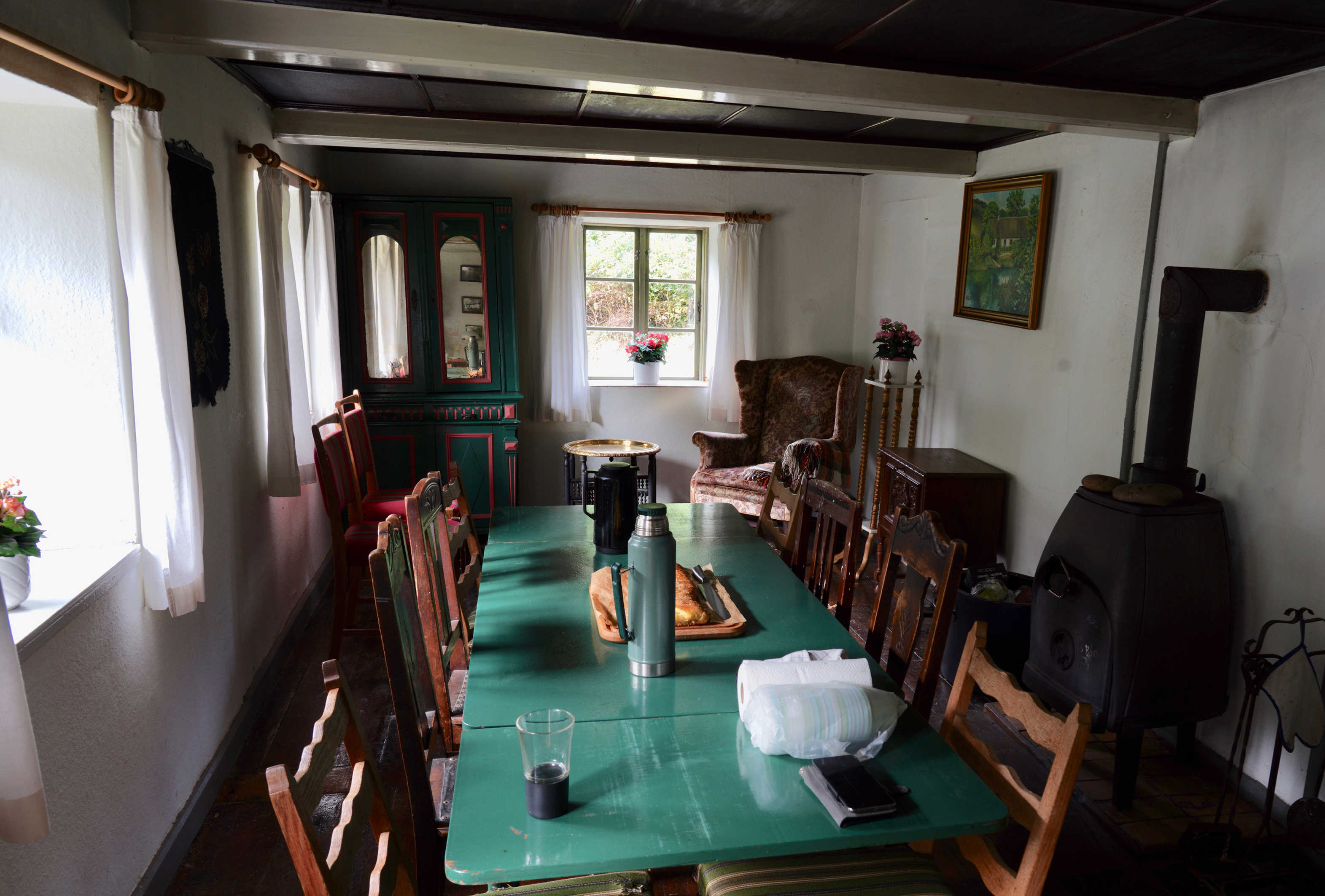 I det indre udmærker huset sig med sine imponerende kig mod både havet og øvrige landskaber, der ses fra stort set alle rum. Velvalgte materialer giver et behageligt indeklima i de velproportionerede og funktionelle rum. I huset er der indtænkt mange fine små tiltag, der gør hverdagen mere bæredygtig, herunder kan nævnes; opsamling af regnvand til tøjvask og toiletskyl, naturlig ventilation og et mindre nedgravet kælderrum til køling af mad- og drikkevarer.