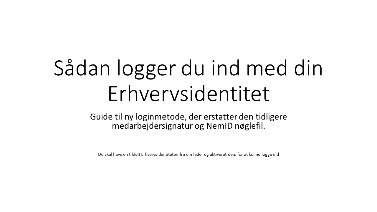 Log ind med Erhvervsidentitet Se hvordan du bruger Erhvervsidentiteten til at logge ind Spring sidemenuen over Indhold Trin for trin - sådan logger du ind med din Erhvervsidentitet Vejledning til login med Erhvervsidentitet - PDF Kontakt It-service og support Opret en sag på Serviceportalen Tingvej 17 - 8543 Hornslet
