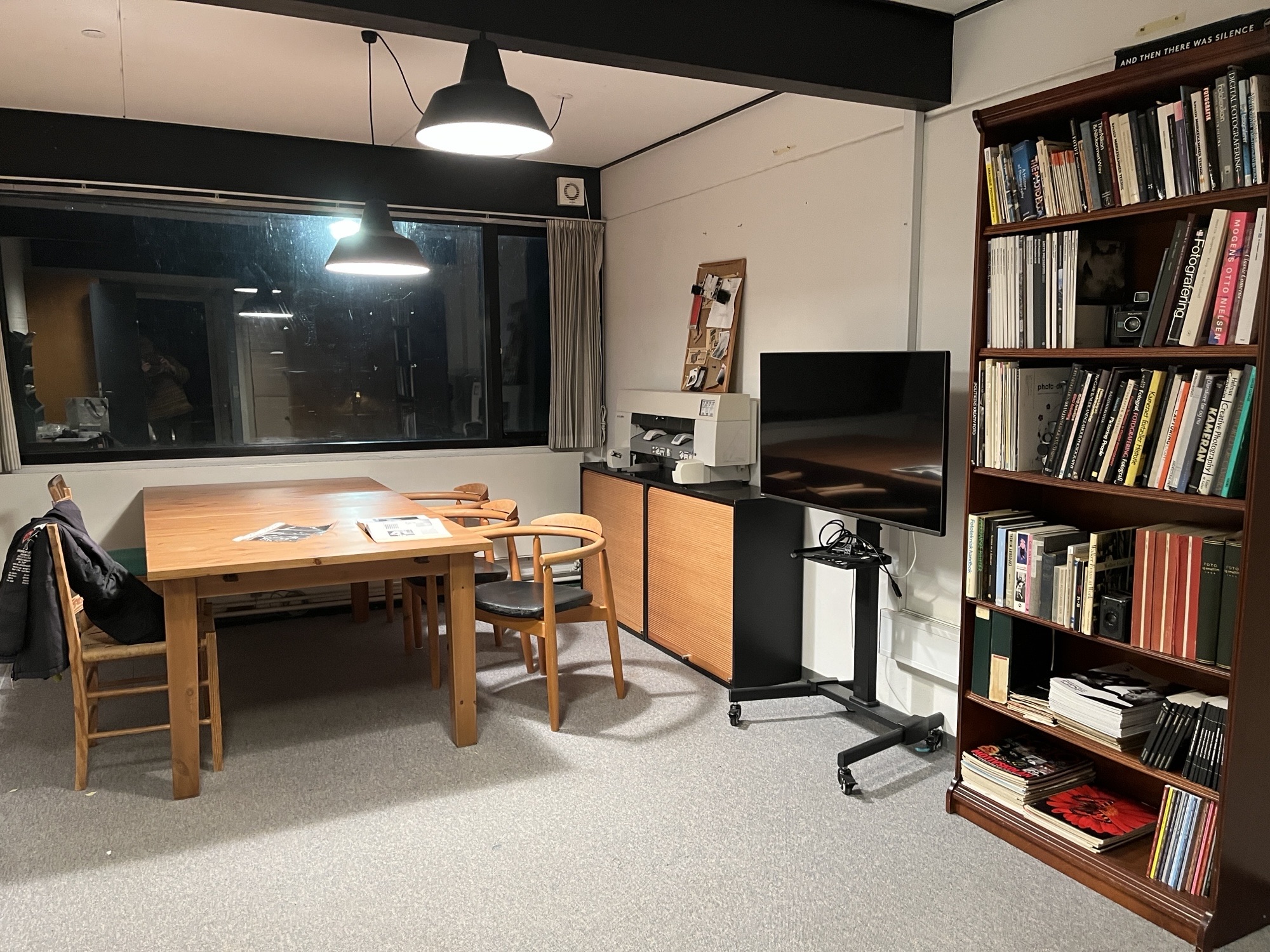 Lille Mødelokale har plads til 6 personer og må bookes til møder. Lokalet ligger med udsigt over vigen og overfor Mørkekammeret.
