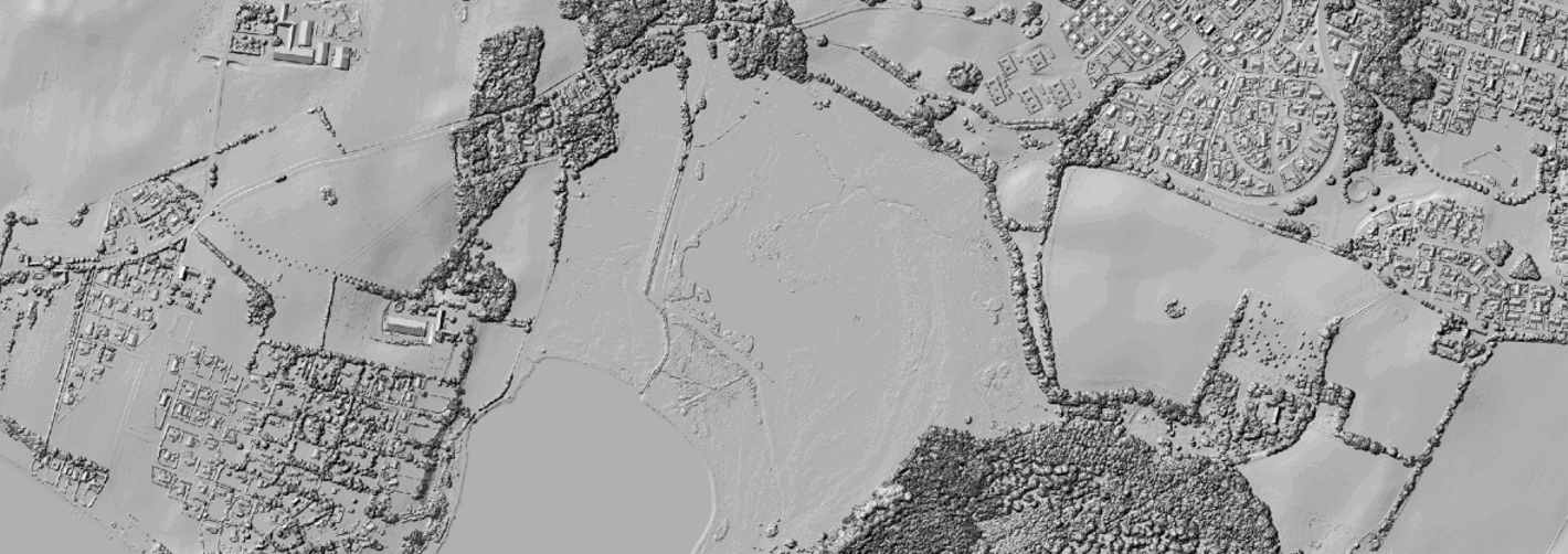 En højdemodel er produceret ud fra en laserscanning af landskabet. Selve højdemodellen består af en masse pixels, som rummer gennemsnitshøjden på et areal der er 0,4 x 0,4 m i terrænet. Billedet viser et udsnit af overflade højdemodellen, som også viser bygninger og træer. Der findes også en terræn højdemodel, som kun viser terræn højden.