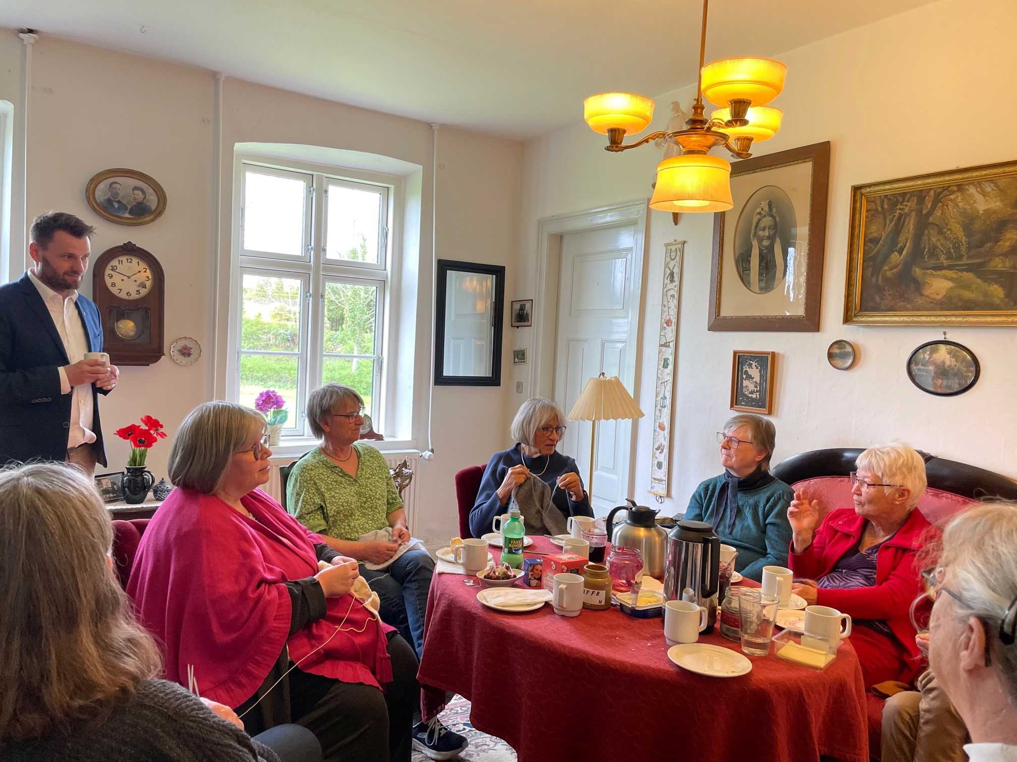 Senere på formiddagen var det tid til åbent kontor. Det foregik i Kulturhuset Helgenæs Præstegaard. I de hyggelige omgivelser fik Borgmesteren en dialog med flere lokale, som kiggede forbi. Det blev også til en snak med en flok aktive "strikkedamer". Kulturhuset bruges til mange forskellige formål og lokale kunstneres billeder bringer liv og farver på væggene.