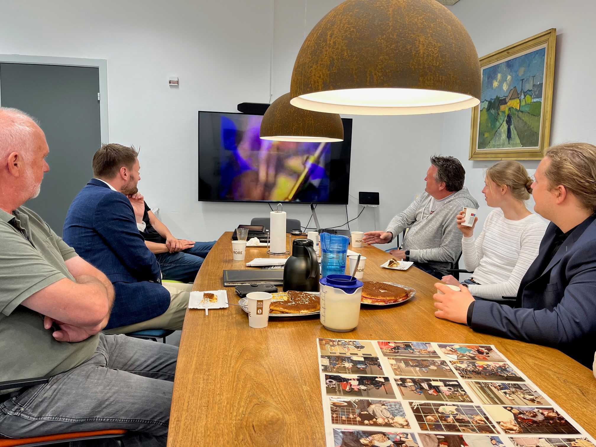 Planen var oprindeligt at besøge Halling Autoophug, men afbud på grund af sygdom betød, at det blev Toft & Alexandersen på Smedebakken 23, der havde kaffe og rundstykker klar.