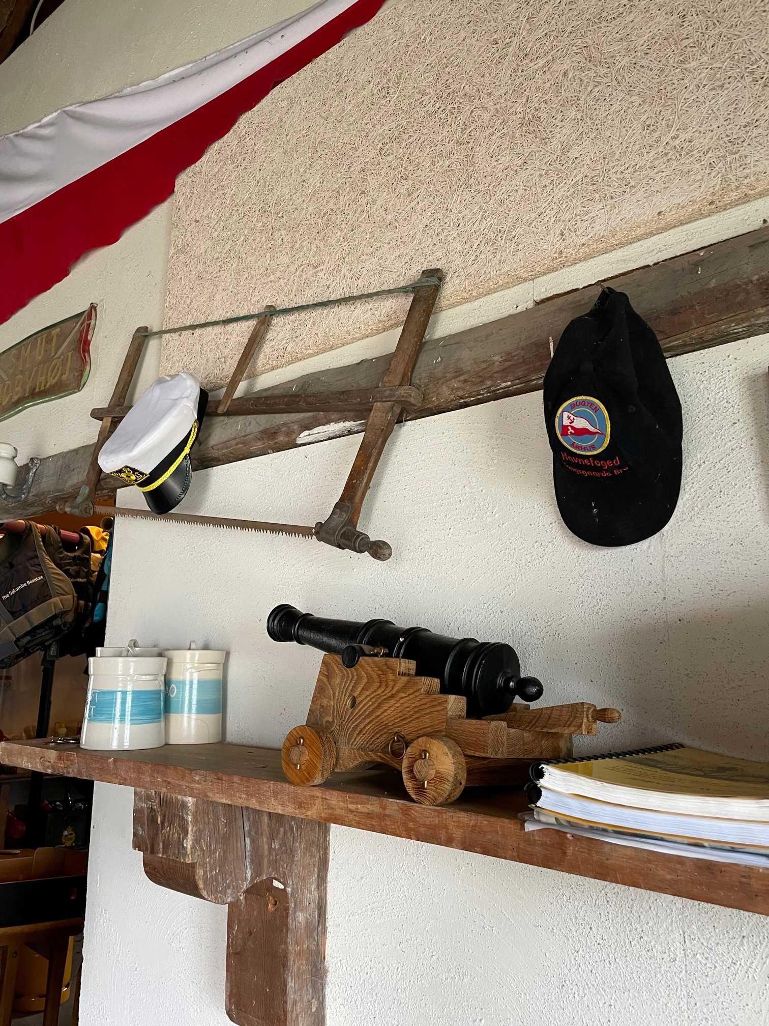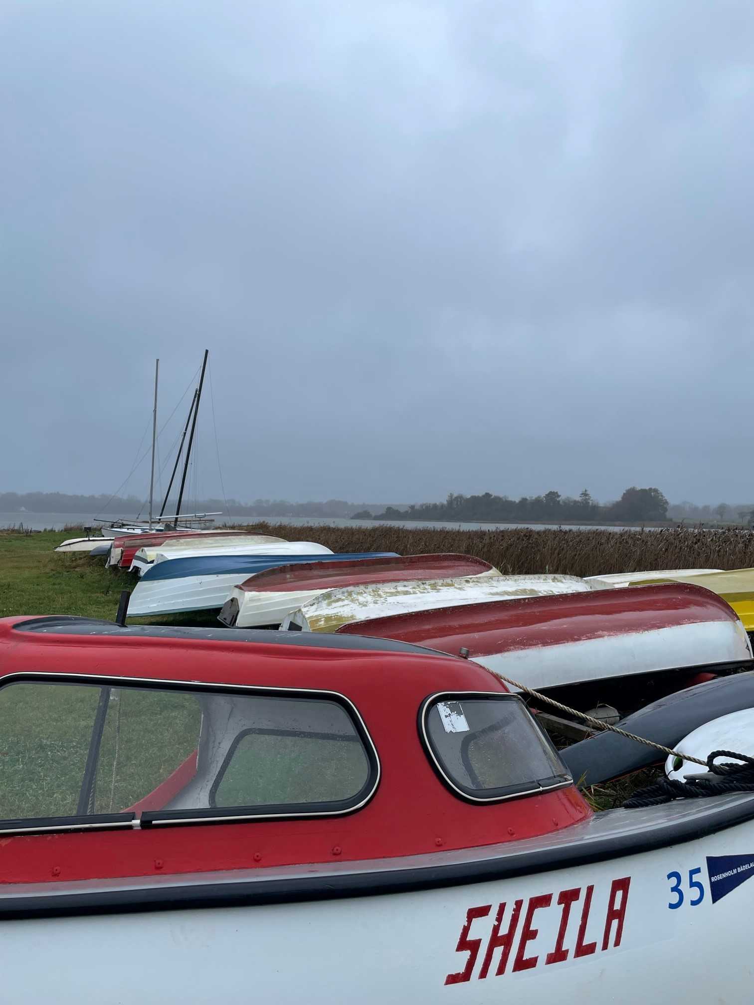 Tilbage ved forsamlingshuset nåede Borgmesteren et kig på de farvestrålende kajakker, som klubben opbevarer i store containere på en mark. Her lå de og ventede på tørvejr og bedre tider. Sæsonen er fra maj til oktober.