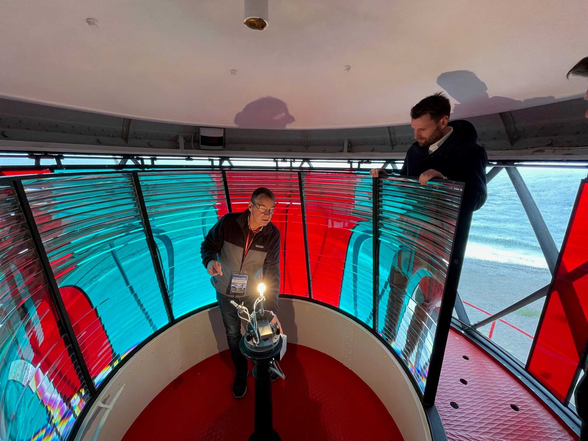 Det nuværende fyr er 16 meter højt, bygget i 1894 og med en lysevne på 16 sømil eller små tredive kilometer. I bygningerne formidles historien om fyret og landskabet, og efter en bevilling fra A.P. Møller Fonden er udstillingen blevet moderniseret og genåbnede i påsken i år. Den nye del af udstillingen fokuserer på maritim navigation, interaktion og engagement mellem udstilling og publikum ved brug af digitale løsninger. Borgmesteren fik også lejlighed til at komme højt til vejrs, op i "prismet", og se hjertet af fyrtårnet, nemlig den store pære, som guider skibene sikkert videre gennem natten.