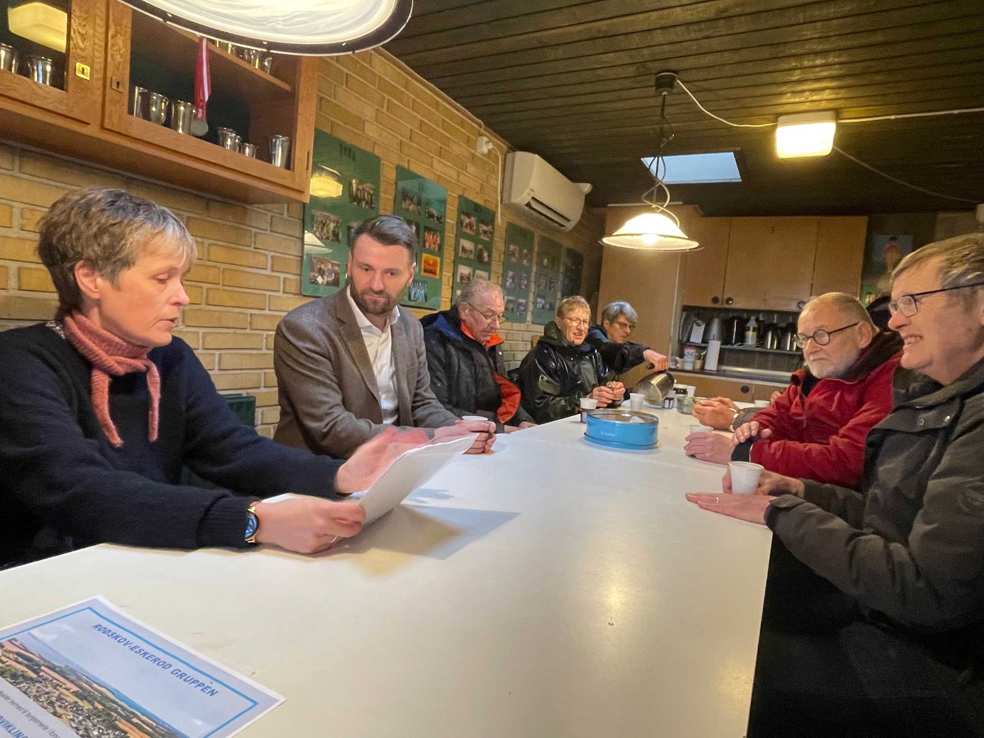 Efter virksomhedsbesøget og åbent kontor på skolen, mødtes Borgmesteren med repræsentanter for Mødestedet Ådalen. Landsbyklyngen 'Liv i Ådalen' vil skabe et fælles mødested, der samler borgerne på tværs af landsbyer, interesser og aldre. Projektet skal binde skolen, dagplejen og idrætshallen i landsbyen Skørring bedre sammen.