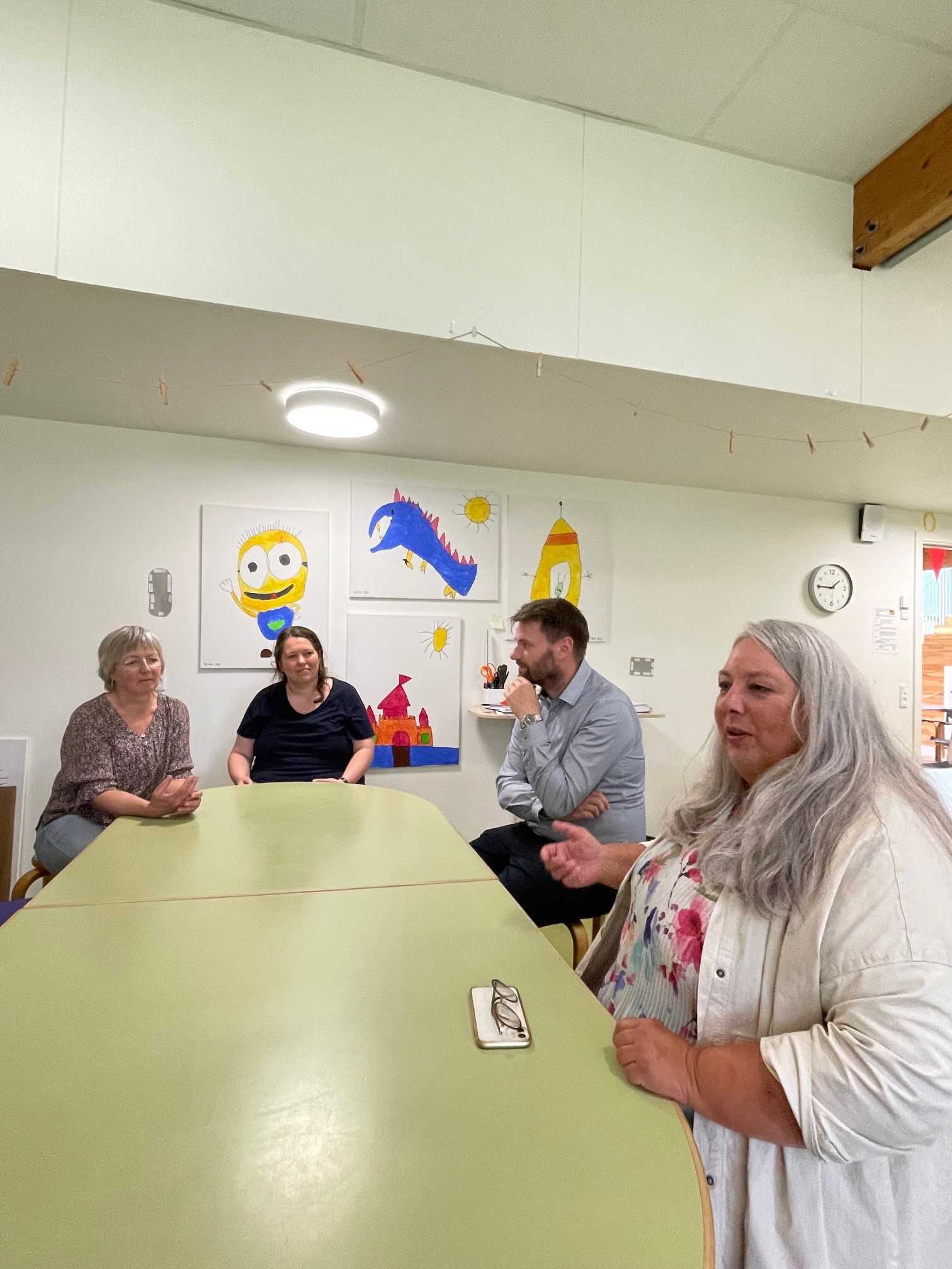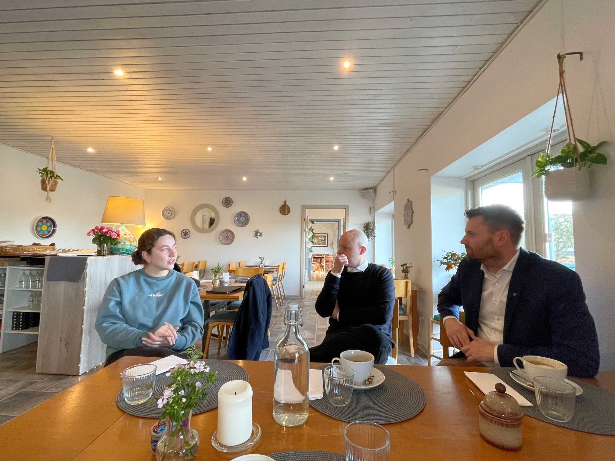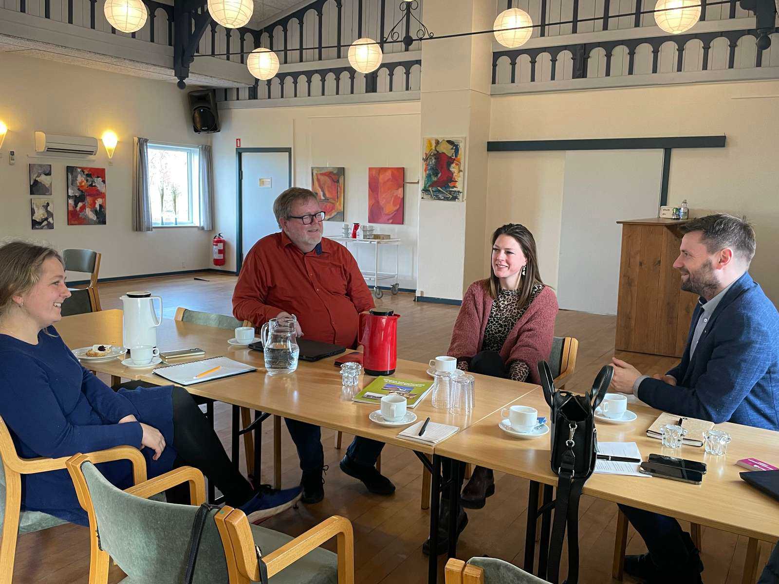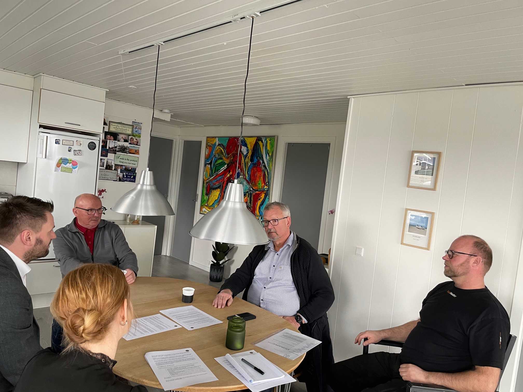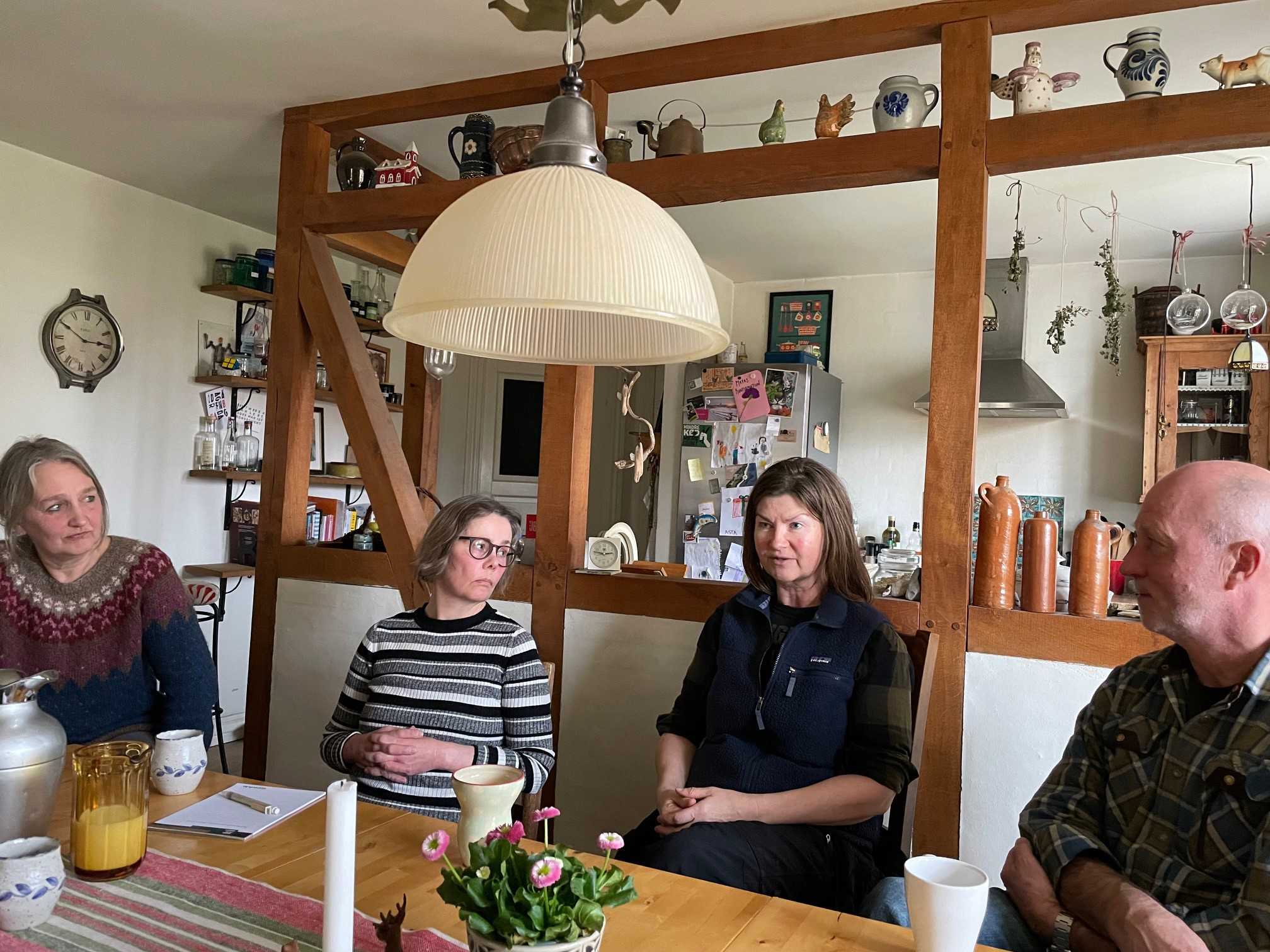 Eftermiddagen fortsatte med dialog med Følle Borgerforenings bestyrelse. Formand Christina Lossen lagde hus til, og i hendes køkken gik snakken om de mange aktiviteter i Følle.