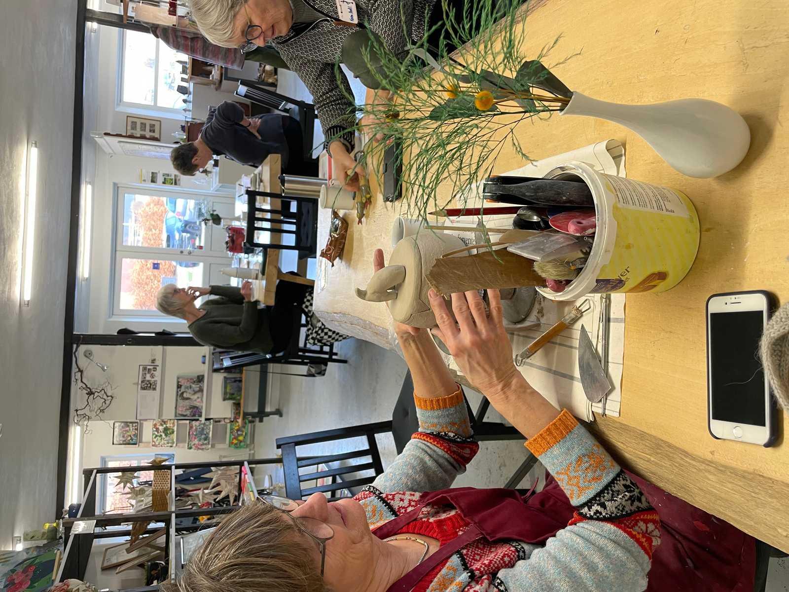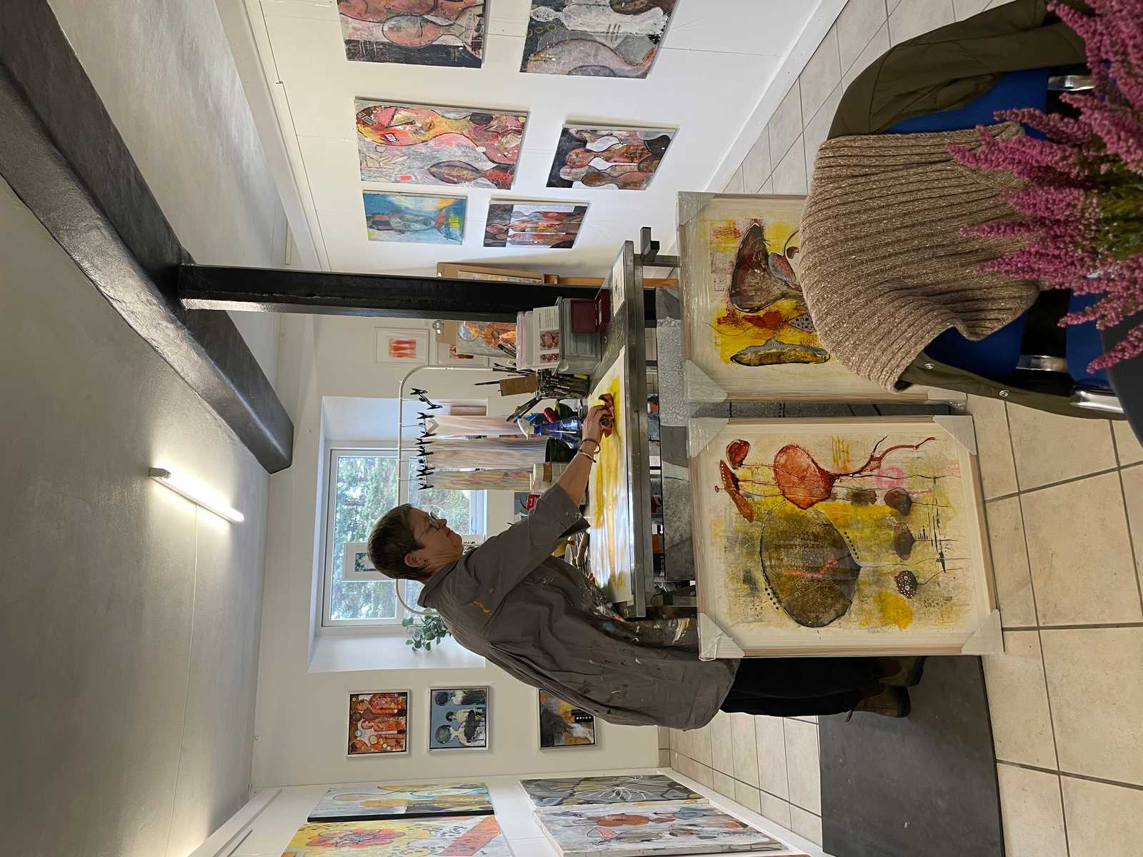 Eftermiddagen fortsatte med besøg hos kunstnerfællesskabet August Art og Molsbjerge A-Art på Havvej. I 2007 startede initiativtageren Britt-Mari August på egen hånd stedet, som dengang var 80 m2. I dag breder de over 30 tilknyttede kunstnere sig på 530 m2. Der er arbejdede værksteder, udstillinger og mulighed for at købe kunst, tøj og pyntegenstande med hjem.