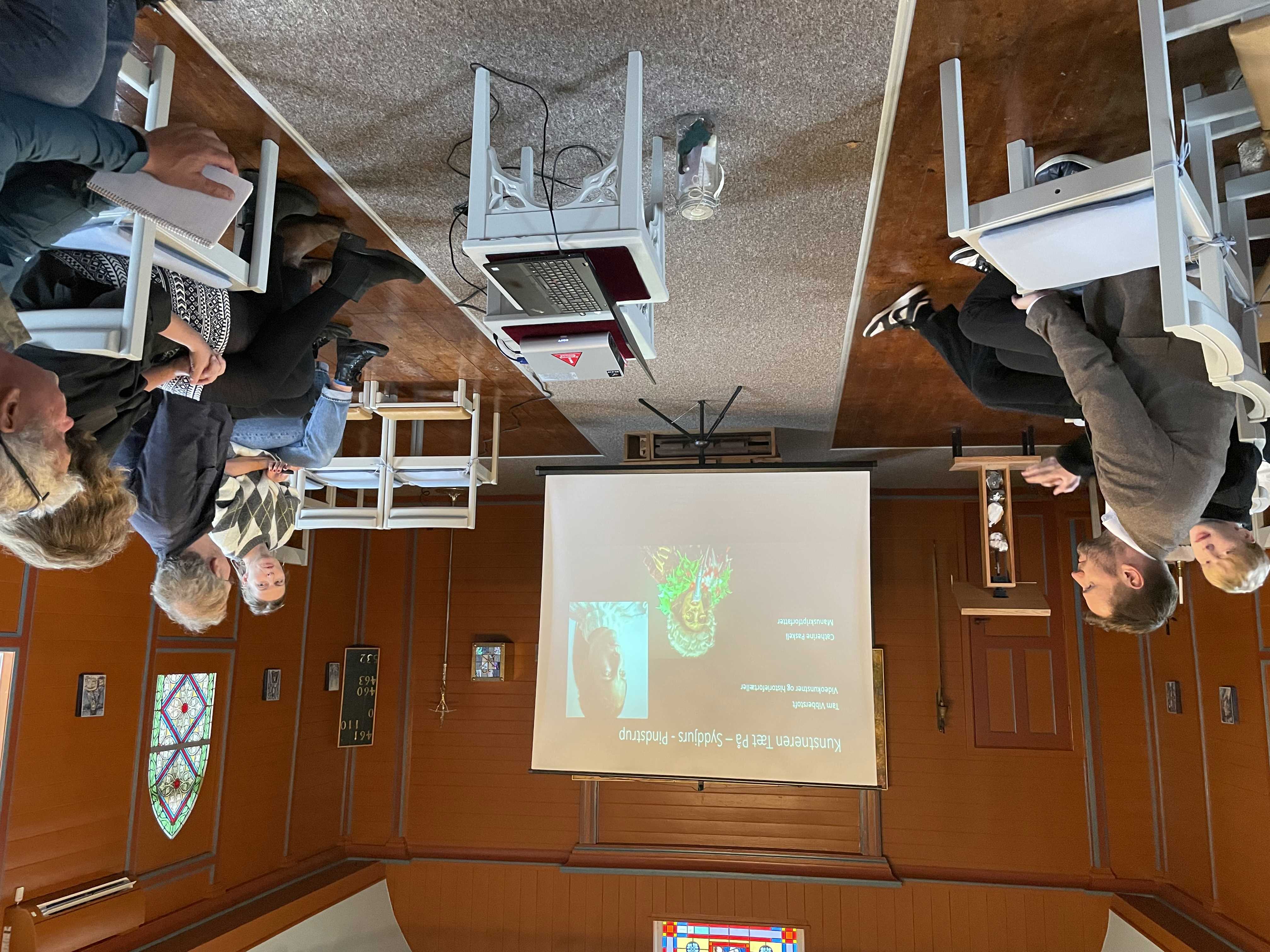 Eftermiddagen bød på besøg vedr. projektet "Kunstneren Tæt På". Det fandt sted i stemningsfulde rammer i Skt. Mikaels Kirke på Kastrupvej.