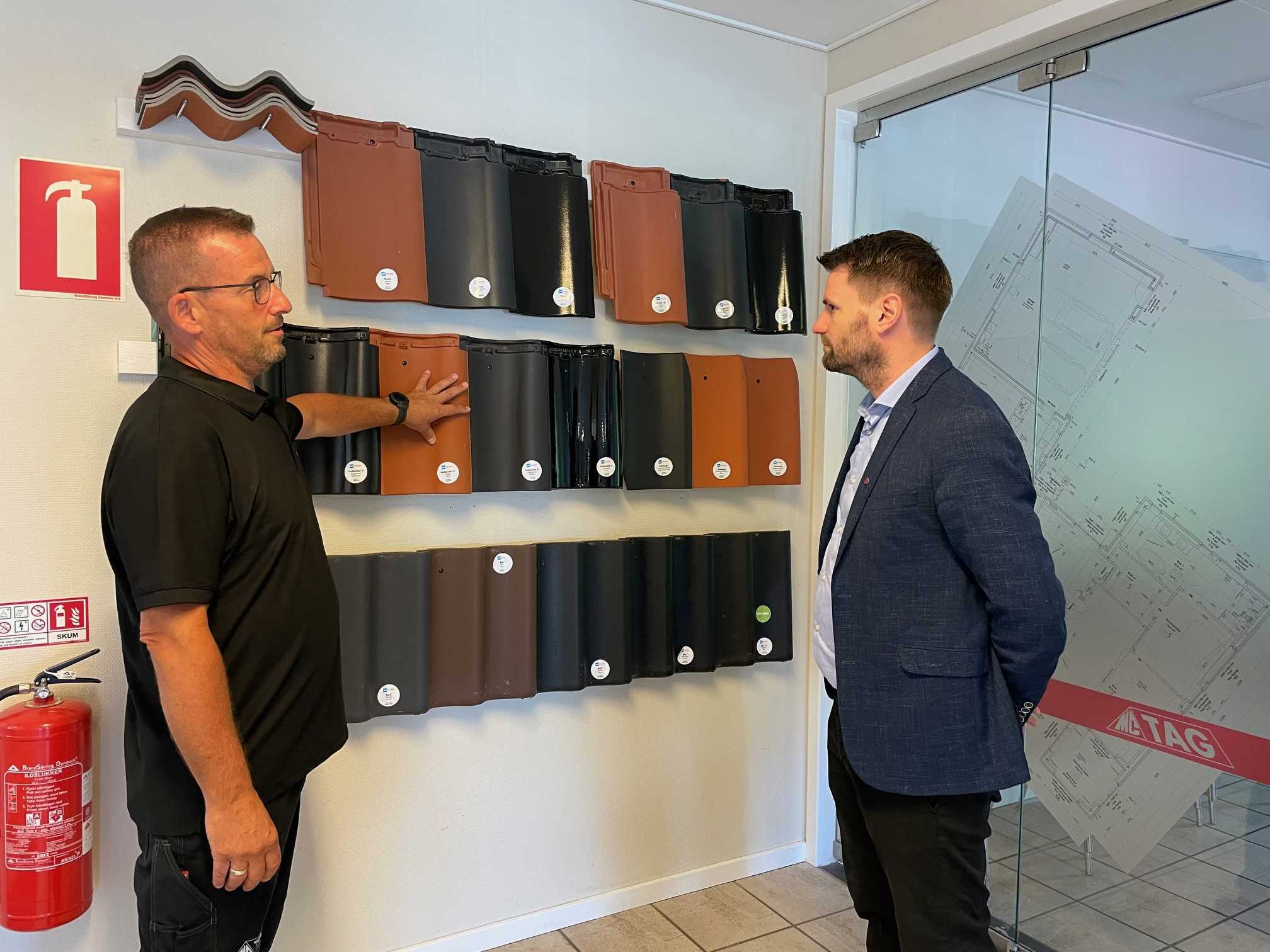 Det primære materiale er eg, men også læder og messing indgår som elementer i produktionen. Borgmesteren og lederen af Syddjurs Kommunes erhvervsenhed Christina Busk fik en rundvisning på lageret og i virksomhedens show room.