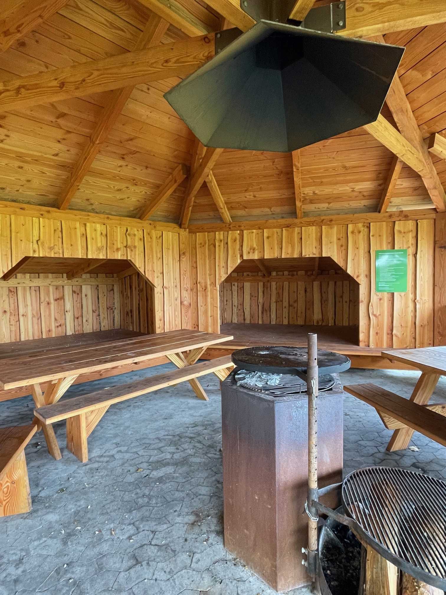 Efter frokost fulgte besøg vedr. byfornyelsens arbejde med et nyt mødested i Nimtofte til fællesaktiviteter. Det fandt sted i den nye bålhytte på sportspladsen ved skolen, og her fortalte de lokale om ønsket om et fælleshus, som skal styrke sammenhængskraften i området. Der er sket meget i Nimtofte de senere år, og et nyt kulturhus bruges blandt andet til store fester og arrangementer, men man savner et mindre fælleshus til mindre aktiviteter.