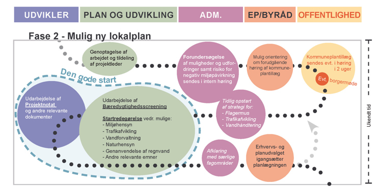 Fase 2 begynder, når lokalplanønsket er blevet prioriteret af Erhvervs- og planudvalget, og projektet har fået tildelt en projektleder i administrationen.