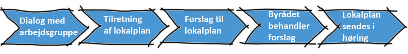 Efterfølgende skal der startes en proces for en mulig lokalplan med tilhørende kommuneplantillæg og miljøvurdering. Dette forløb er beskrevet fase 2 - 4.