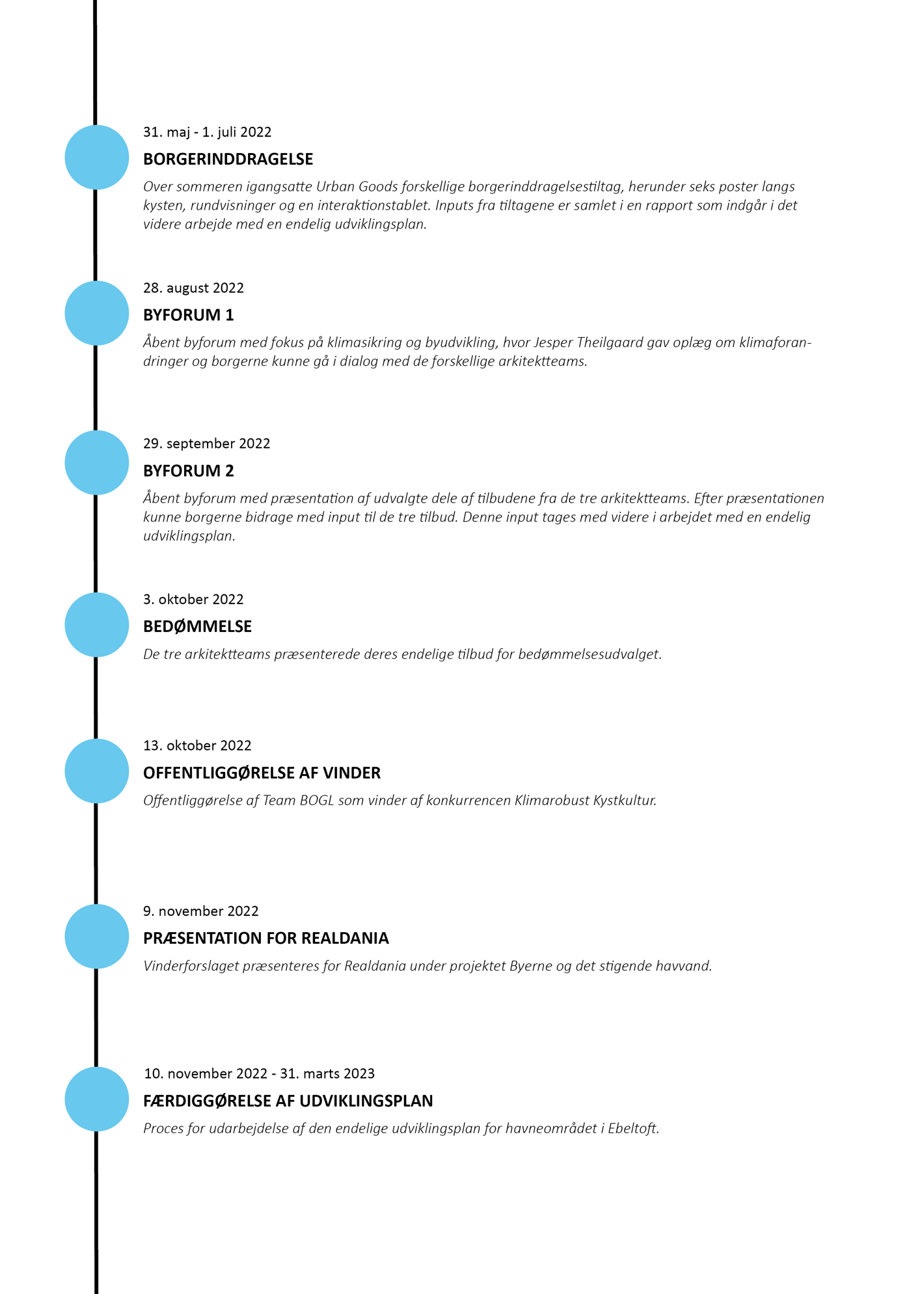 Tre stærke og kompetente arkitektteams har siden foråret 2022 arbejdet på at give deres bedste bud på ”klimarobust kystkultur” – en gennemtænkt og visionær udvikling af havneområdet i Ebeltoft, der beskytter mod fremtidige klimaudfordringer og samtidig bevarer byens identitet som søkøbsstad.