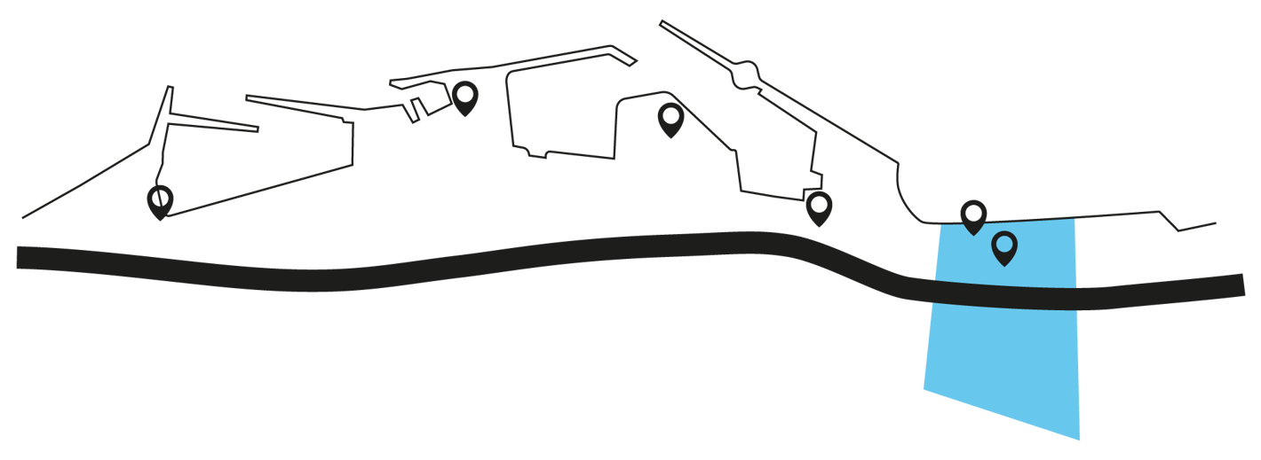 I dette område er der idéer om at skabe bedre sammenhæng mellem by og hav, både ved Maltfabrikken og ved Jernbanegade. Idéen er at lave nye overgange til vandet og tænke nye sammenhænge med byen i form af grønne, rekreative byrum med mulighed for ophold, der samtidig tilgodeser trafikken i Jernbanegade og på Strandvejen.