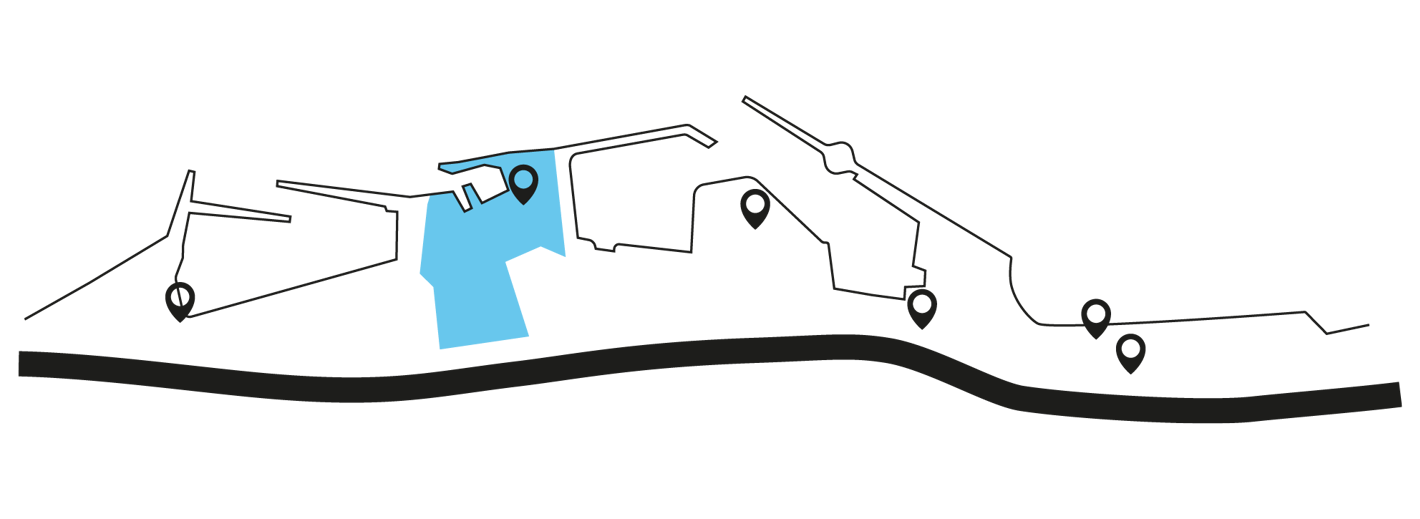 Området rummer både fiskerihavn med små fiskerbåde, fiskerskure, det maritime forsamlingshus med flere maritime foreninger, og den grund, hvor STARK tidligere lå.