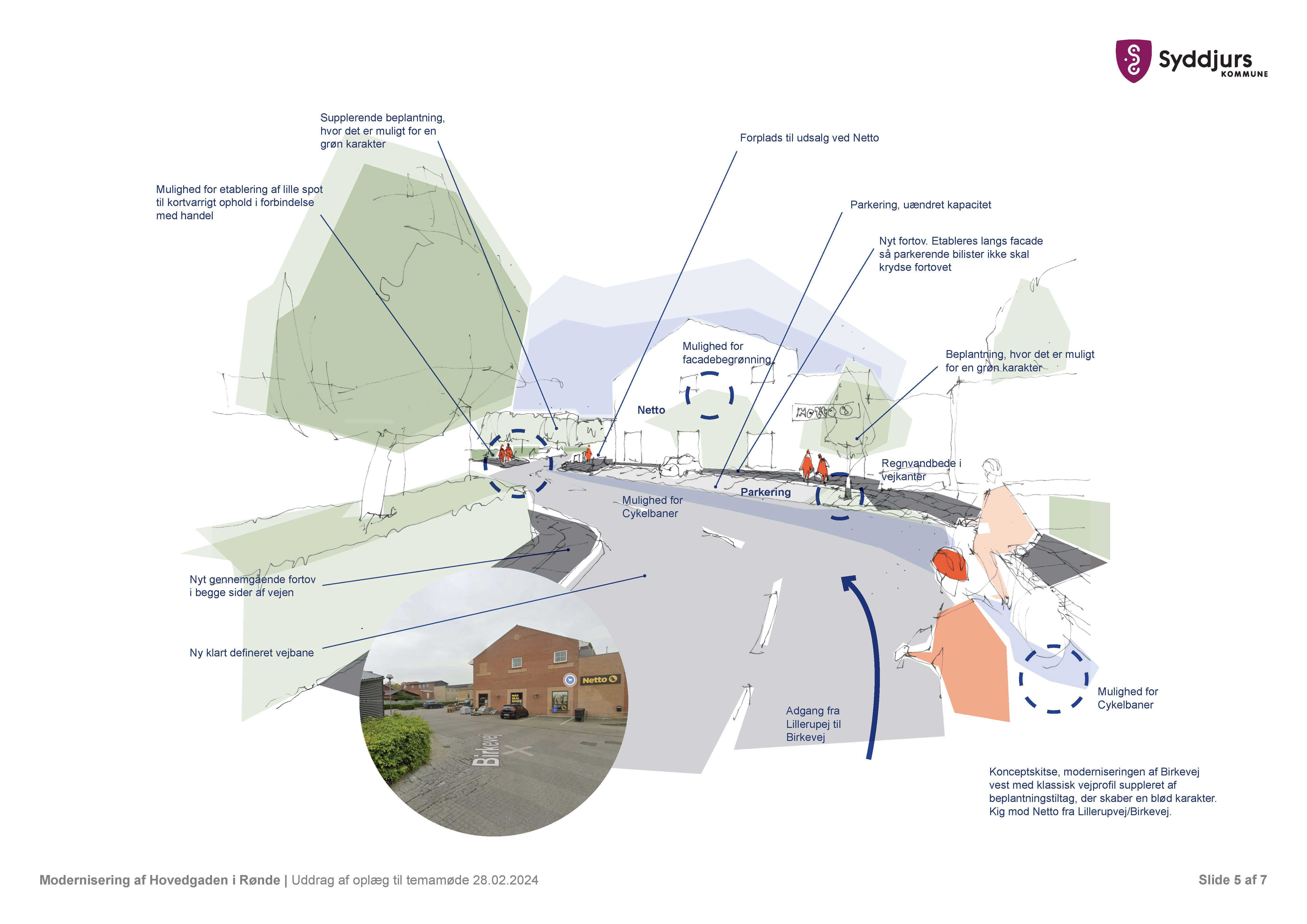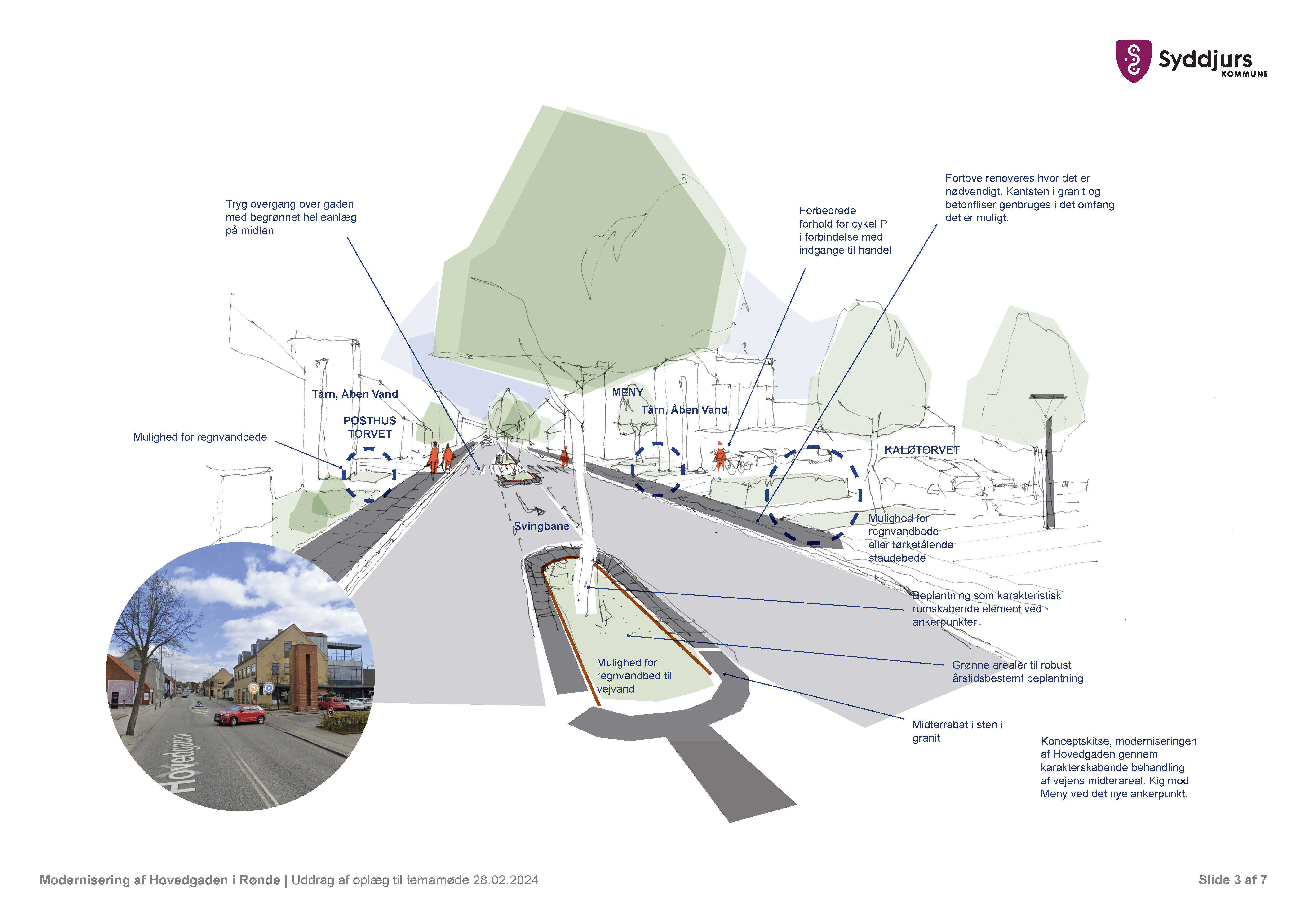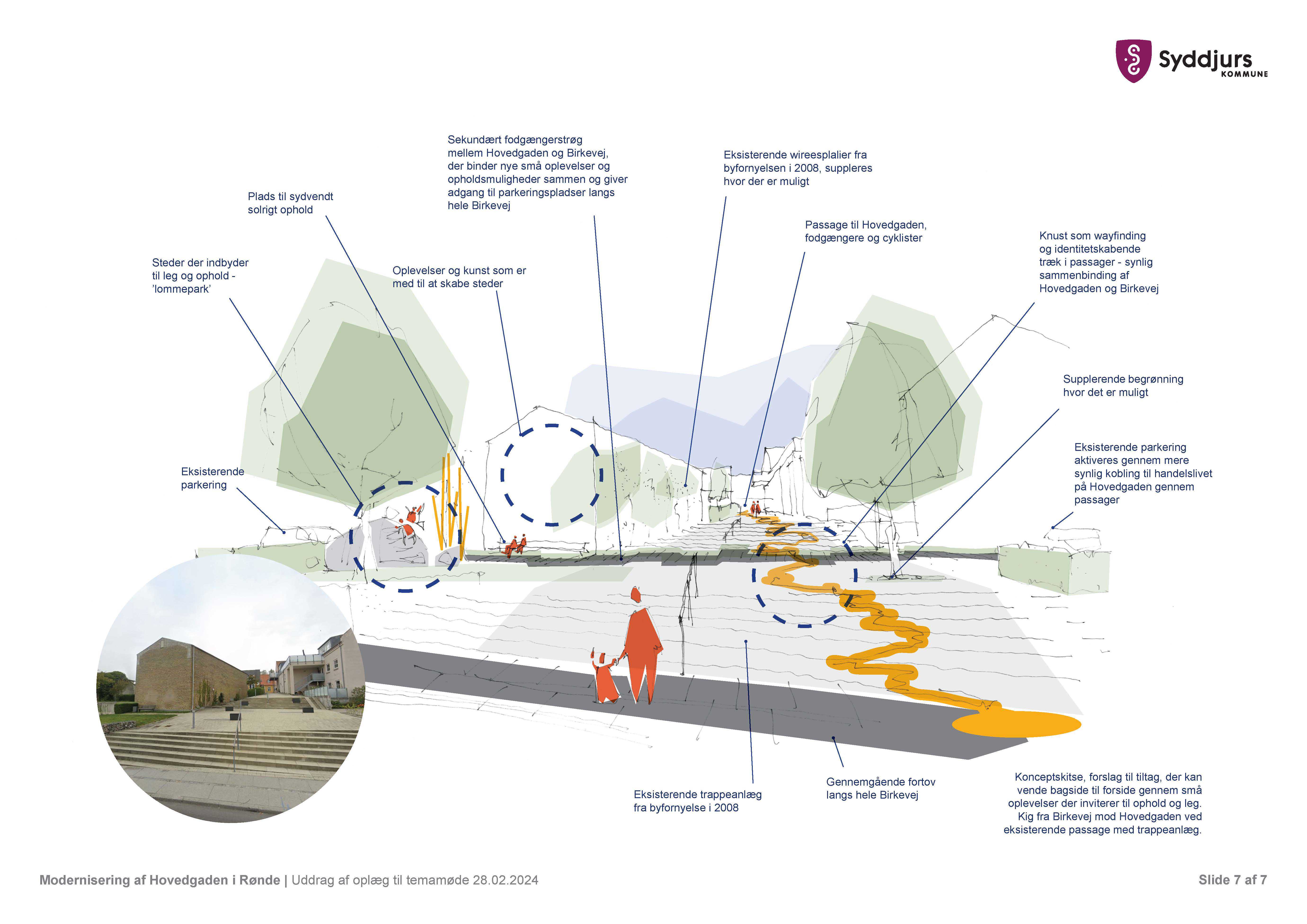 Efter den politiske beslutning i maj 2024, blev der arbejdet videre med at kvalificere konceptskitsen og tegne den igennem, til et egentlig skitseforslag - der har blandt andet været fokus på trafiksikkerhed, kvalitet og budget. Sideløbende hermed er der lavet involvering af relevante aktører, internt samt eksternt, så det blev sikret at projektets ideer også fremadrettet har hold i virkeligheden.