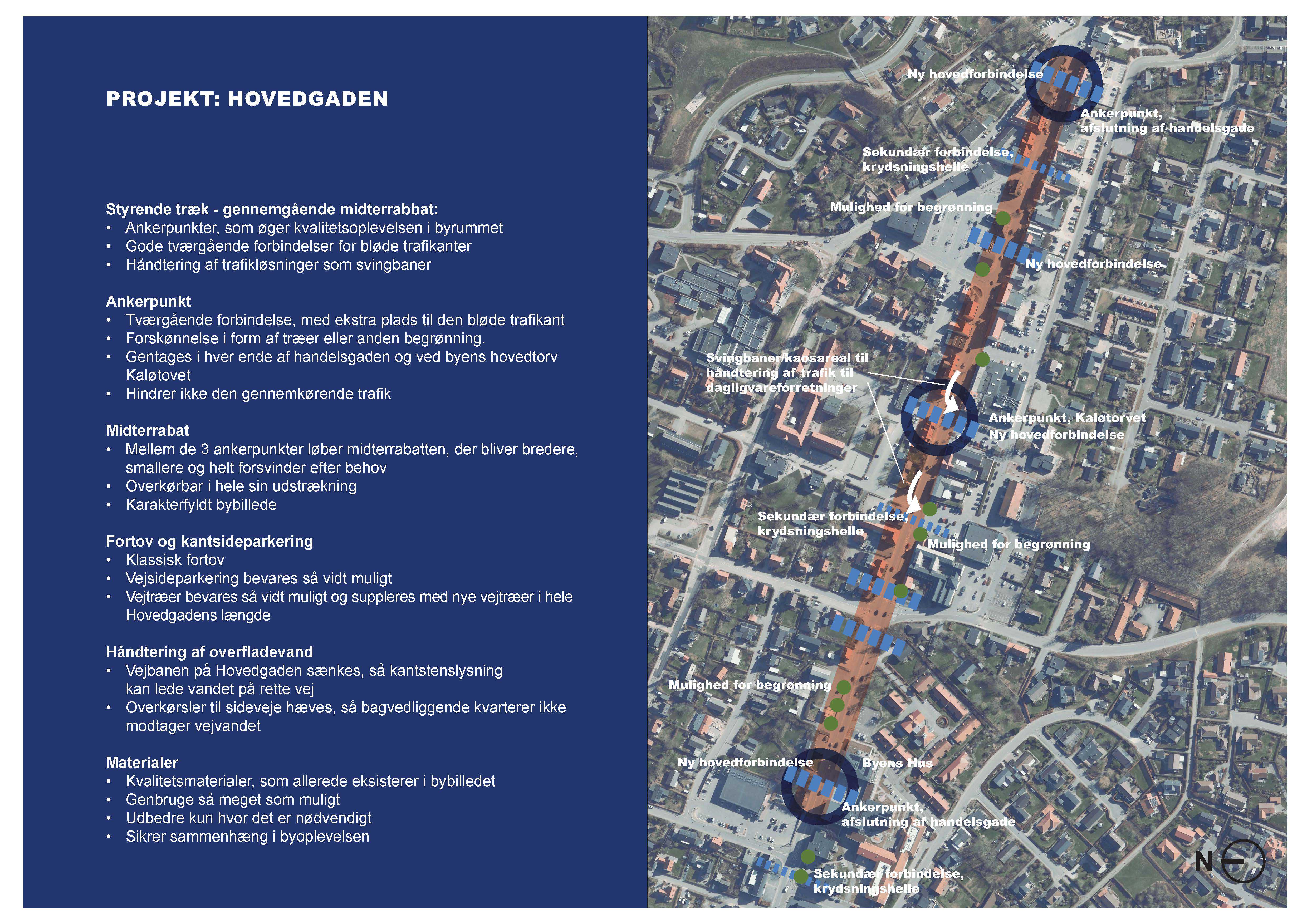Projektets mål er at løfte Hovedgaden og byrummene i forbindelse hermed - men hvordan det ser ud eller hvor det præcist skal ske, er hverken afklaret eller tegnet endnu. Tidligere tanker peger blandt andet på muligheden for at arbejde med:
