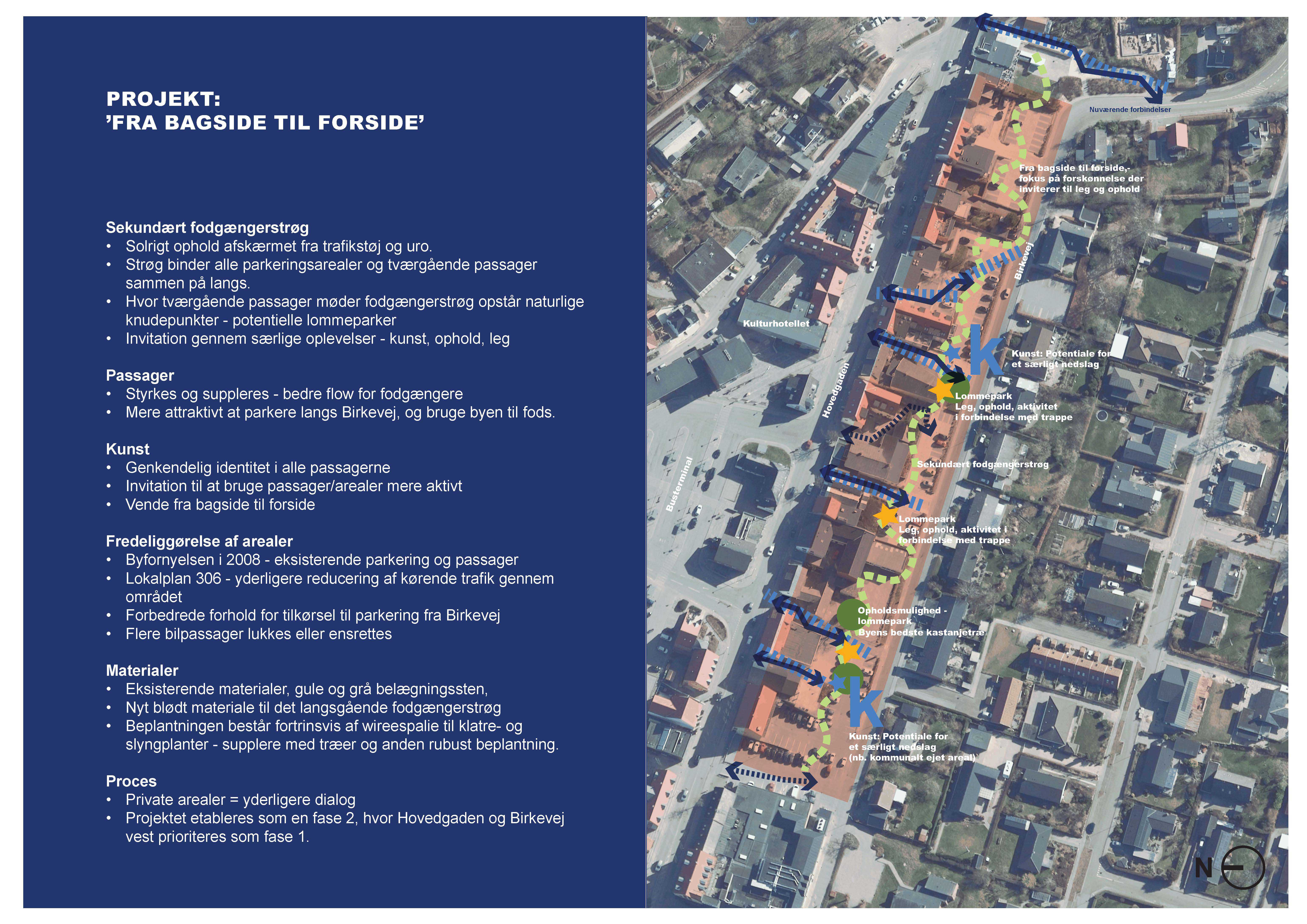Med udgangspunkt i en bred involvering af borgere og aktører, og de tidligere udarbejdede planer og visioner for byen*, skal der udformes et helhedsorienteret projekt, der vil kunne skabe unikke muligheder for synergier mellem byliv, handelsliv og turisme.