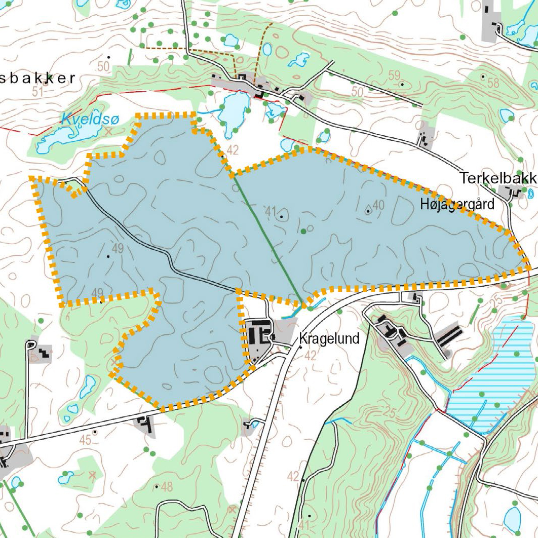 - Området øst/nord for Nødagervej udgår af projektet